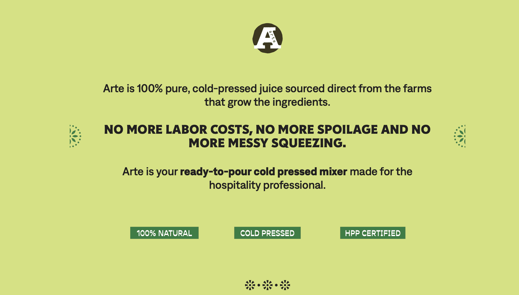 A growing portfolio of cold-pressed lime, lemon, and grapefruit juices, alongside cocktail-forward SKUs tailored for high-volume foodservice environments. Arte is supported by established distribution relationships and is actively working with leading foodservice partners and national distributors across North America.